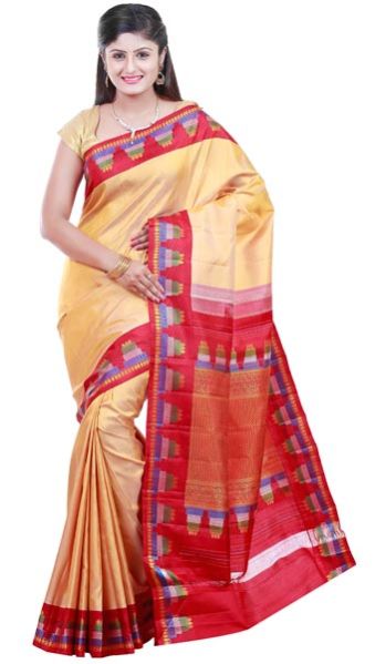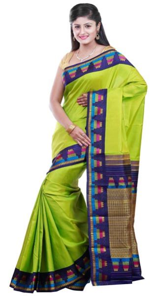 The Pure Silk Hand-Woven Sarees, offered by us, suit the needs of those who wear Traditional Sarees in pure silk. Our Pure Silk Saree is made in a traditional pattern of double side contrast border with contrast mundi. Jari is used in the border design and the mundi is dyed in the tie and dye method. Mild jari work is made in the mundi as well to give an attractive look to the Pure Silk Saree.